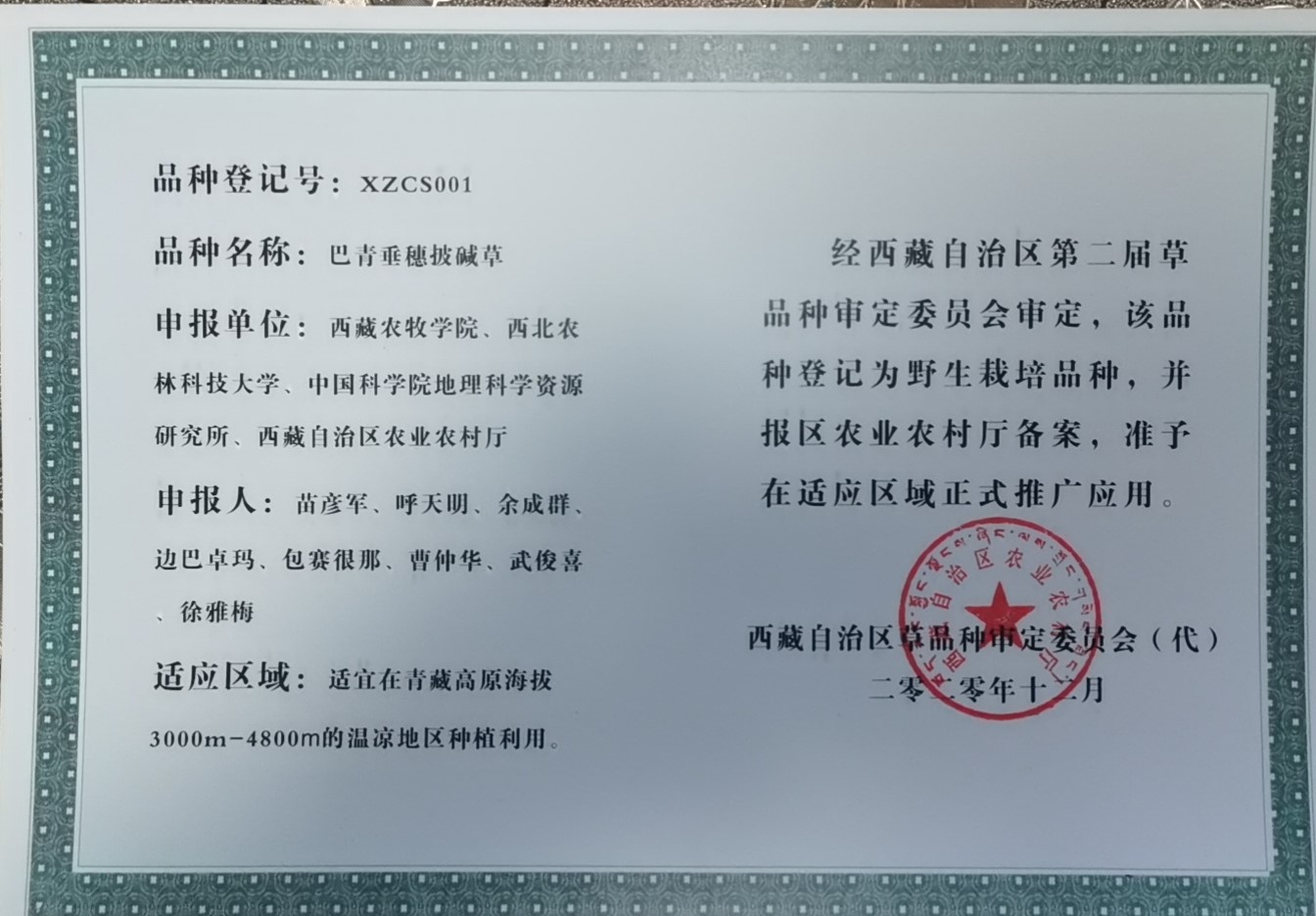 “巴青垂穗披碱草”新品种及其种繁技术