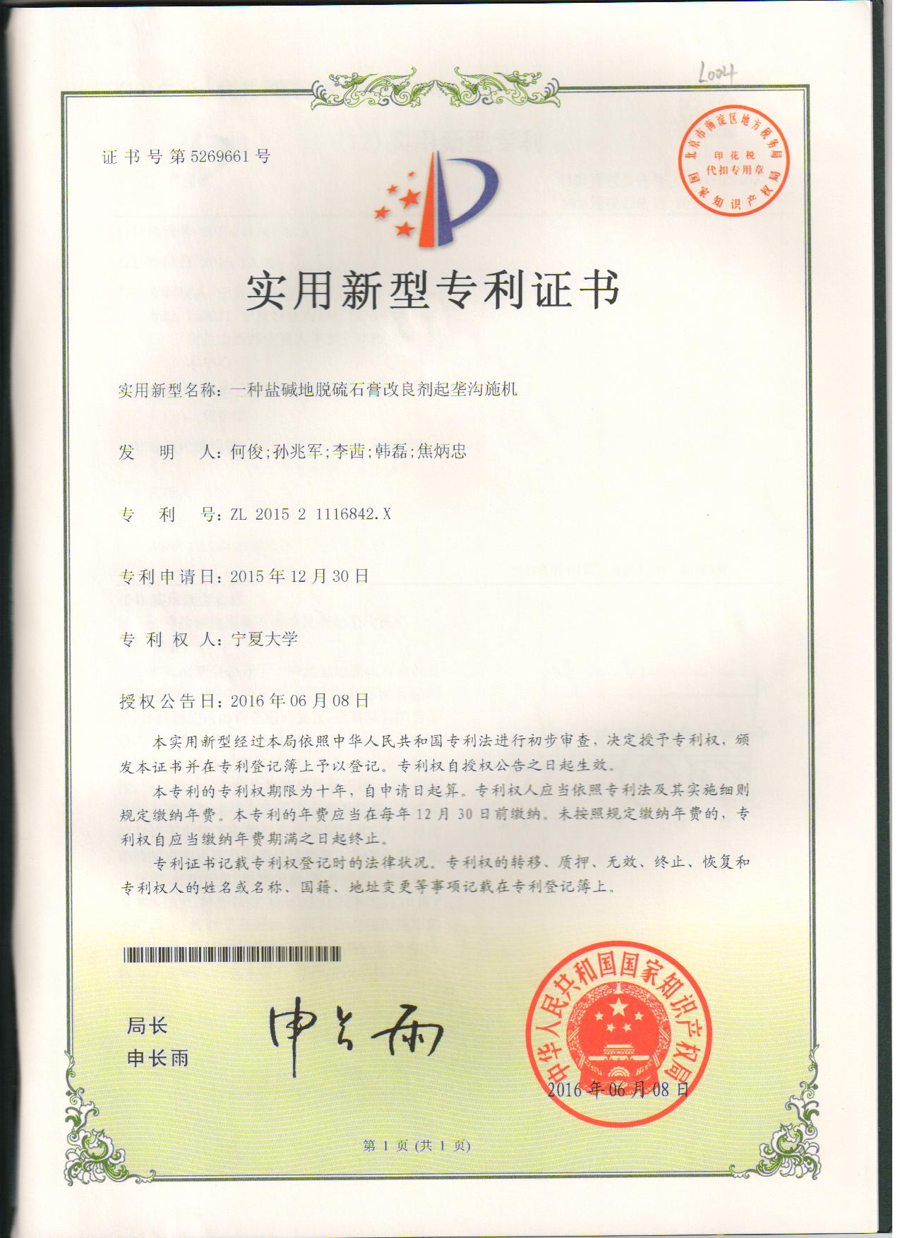 一种盐碱地脱硫石膏改良剂起垄沟施机