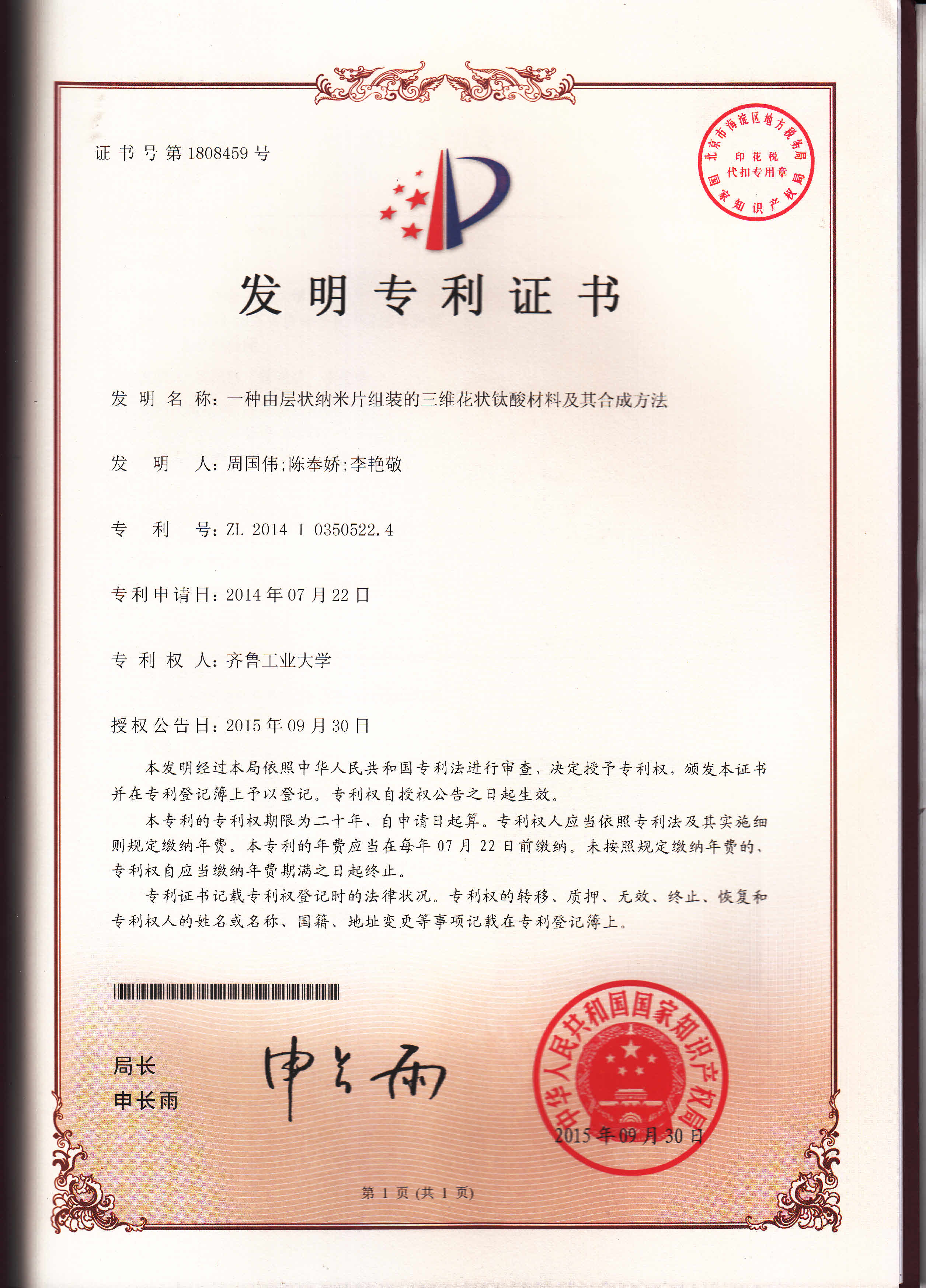 一种由层状纳米片组装的三维花状钛酸材料及其合成方法