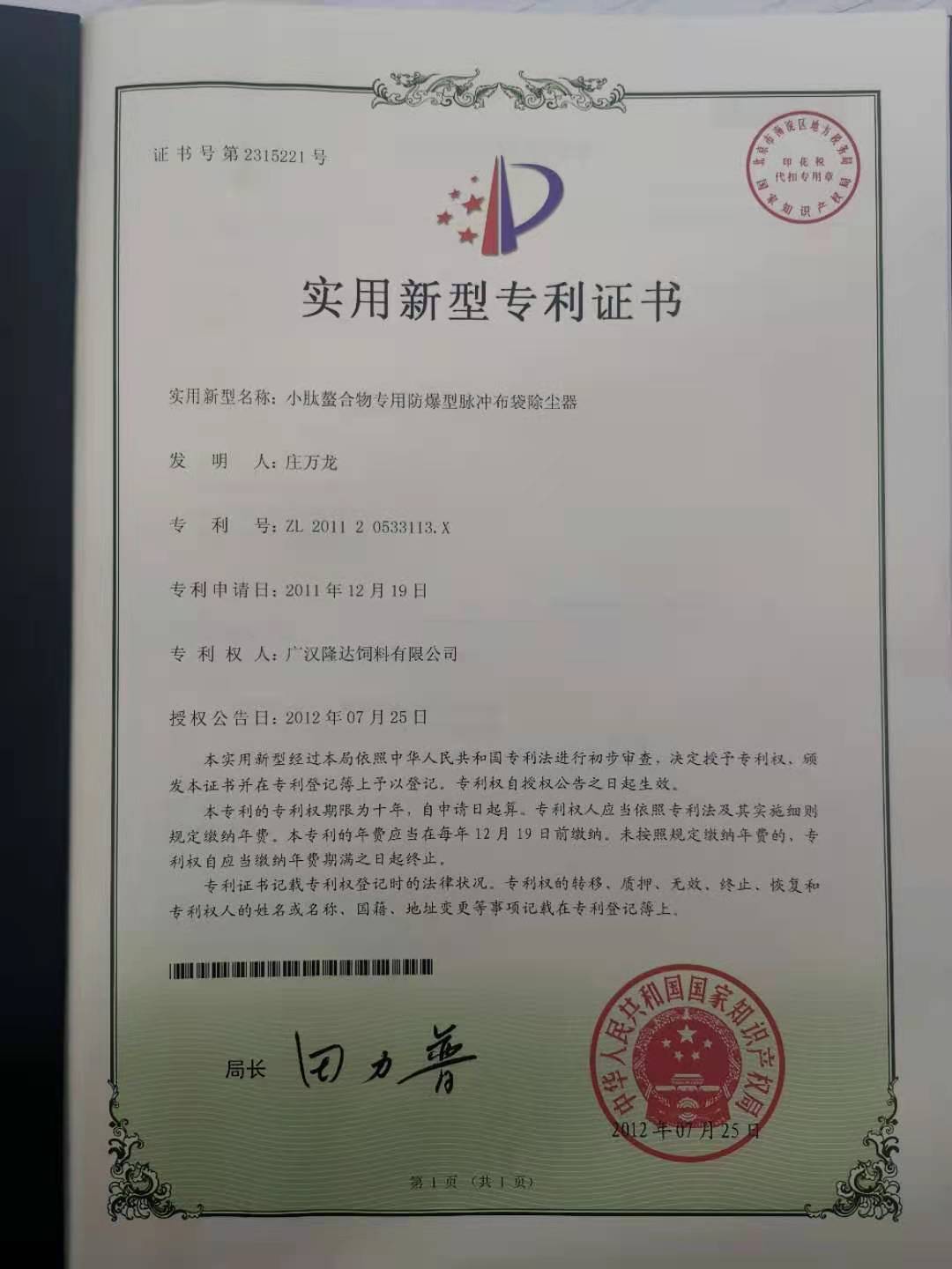 小肽螯合物专用防爆型脉冲布袋除尘器