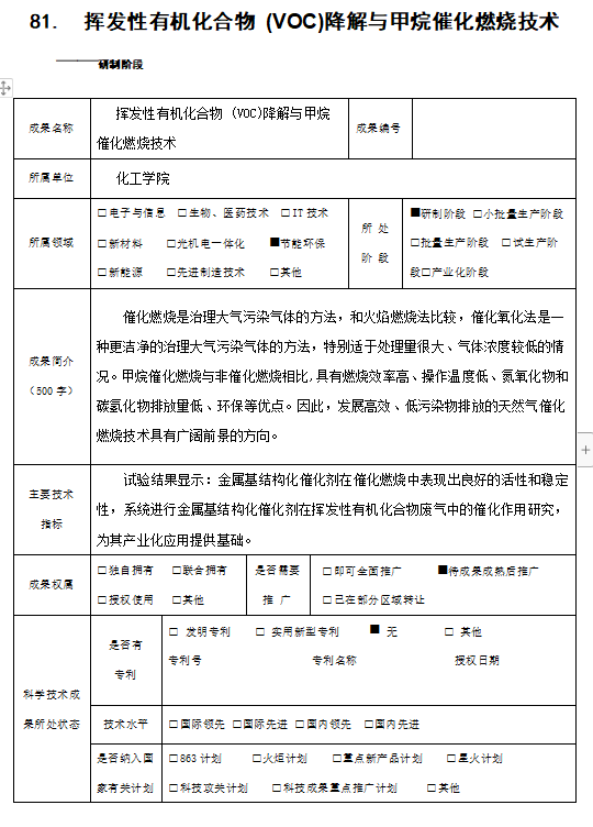 挥发性有机化合物 (VOC)降解与甲烷催化燃烧技术