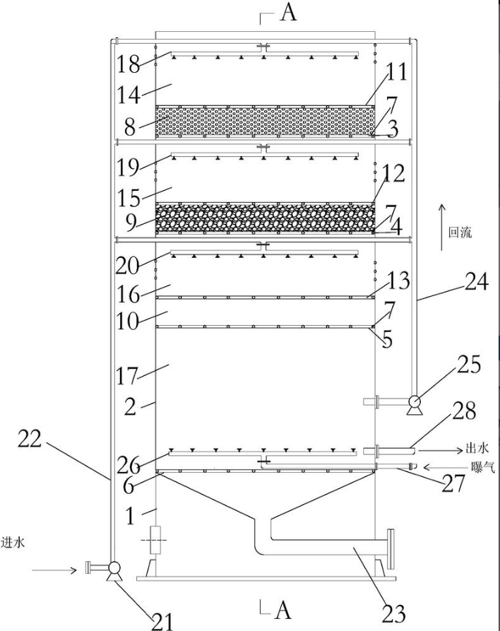 一种分层射流充氧塔式生物脱氮除磷反应器