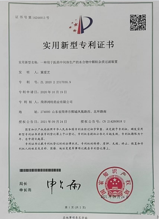 一种用于医药中间体生产的水合物中颗粒 杂质过滤装置