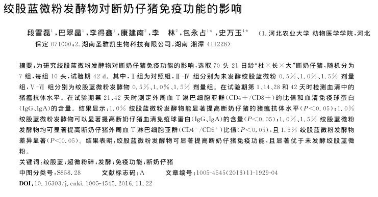 发酵绞股蓝提高蛋鸡产蛋性能和仔猪免疫及生长性能