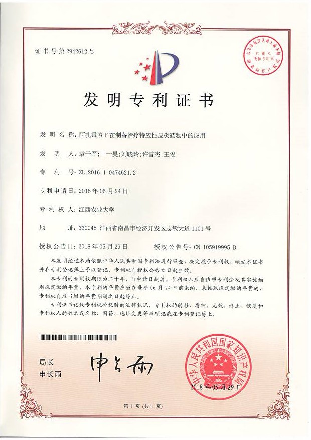 阿扎霉素F在制备治疗特应性皮炎药物中的应用