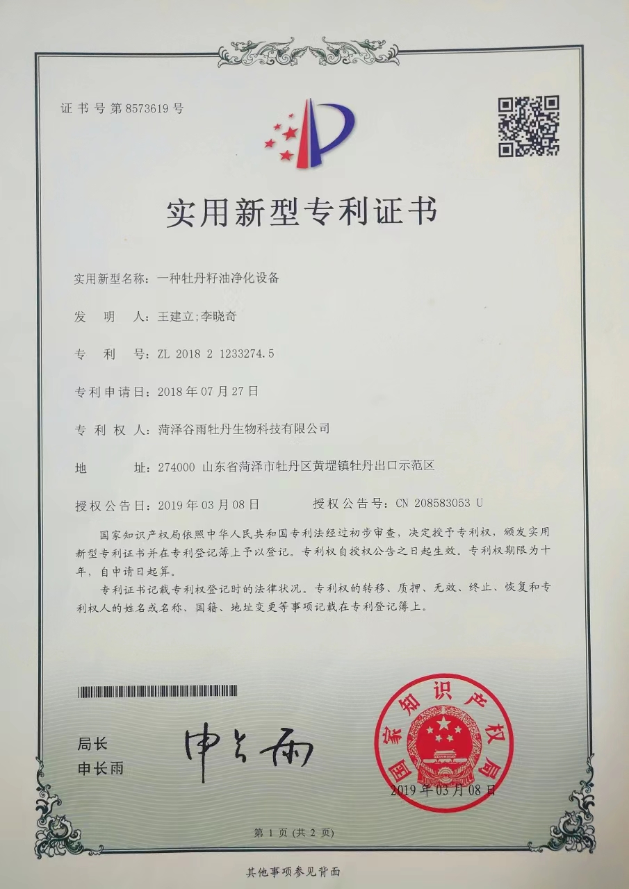 一种牡丹籽油净化设备