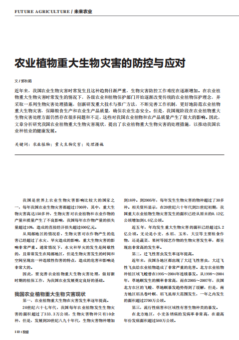 农业植物重大生物灾害的防控与应对