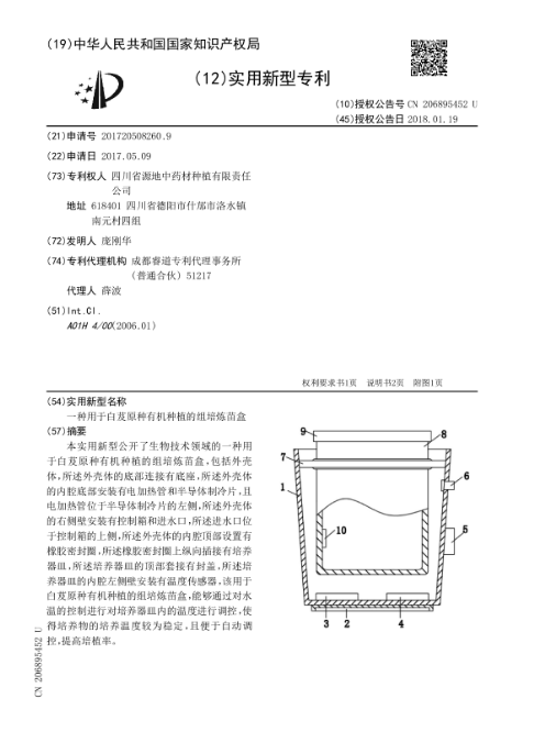 一种用于白芨原种有机种植的组培炼苗盒