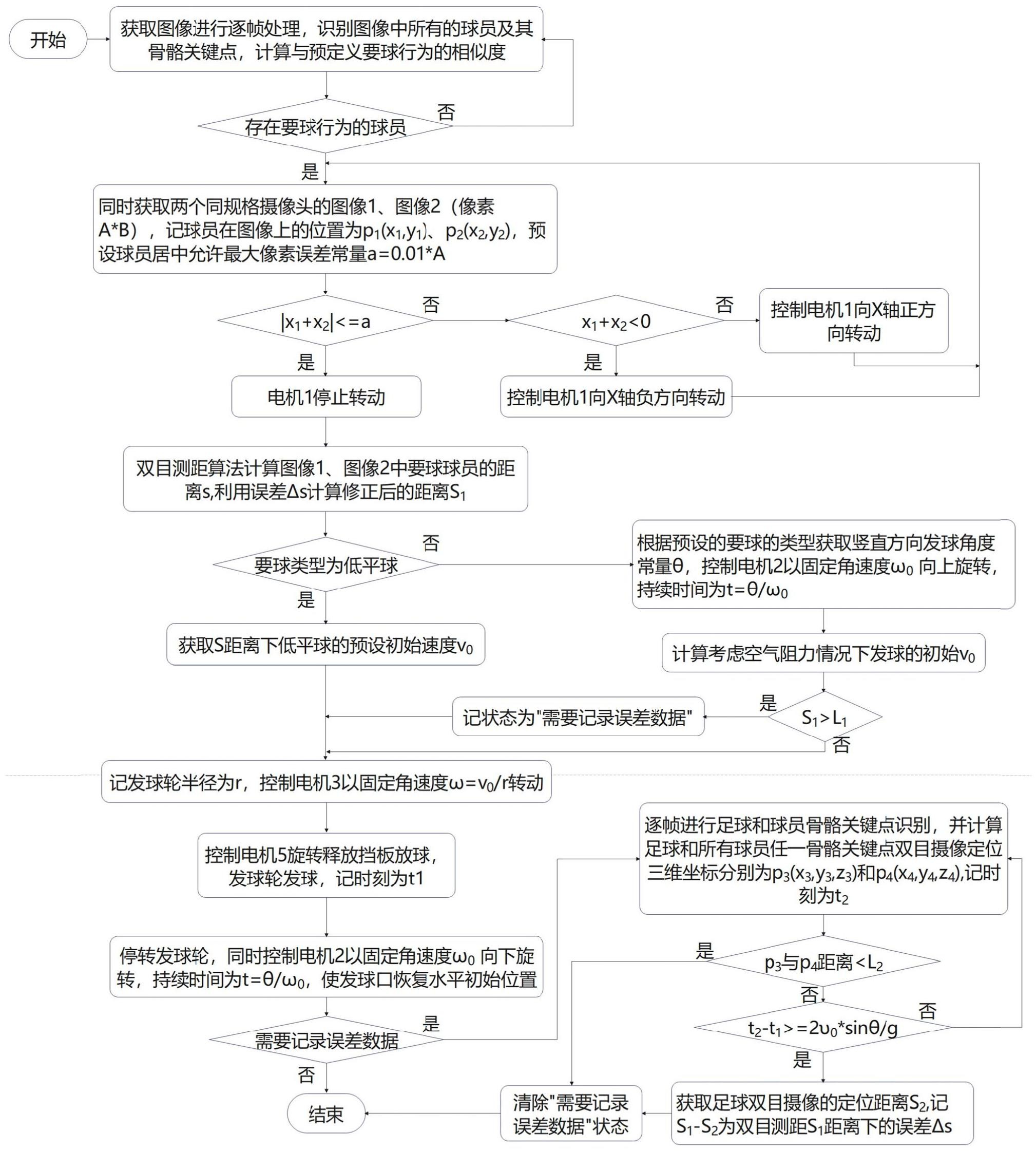 一种基于行为识别及双目摄像测距的发球方法与装置