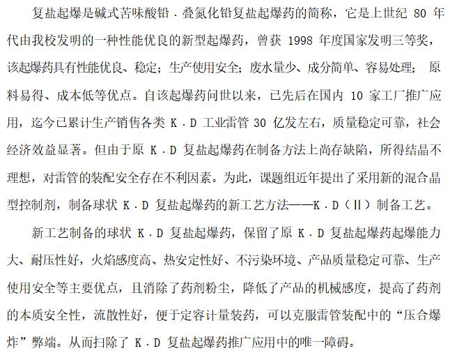 球状 K.D 复盐起爆药