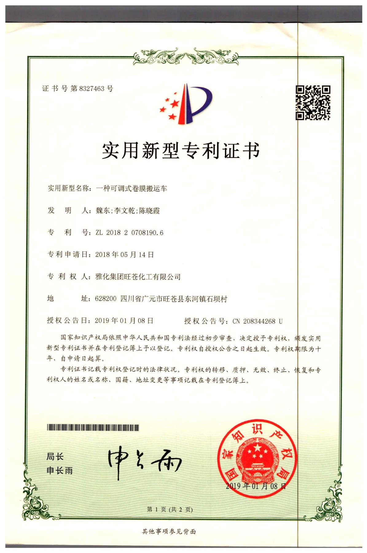 一种可调式卷膜搬运车