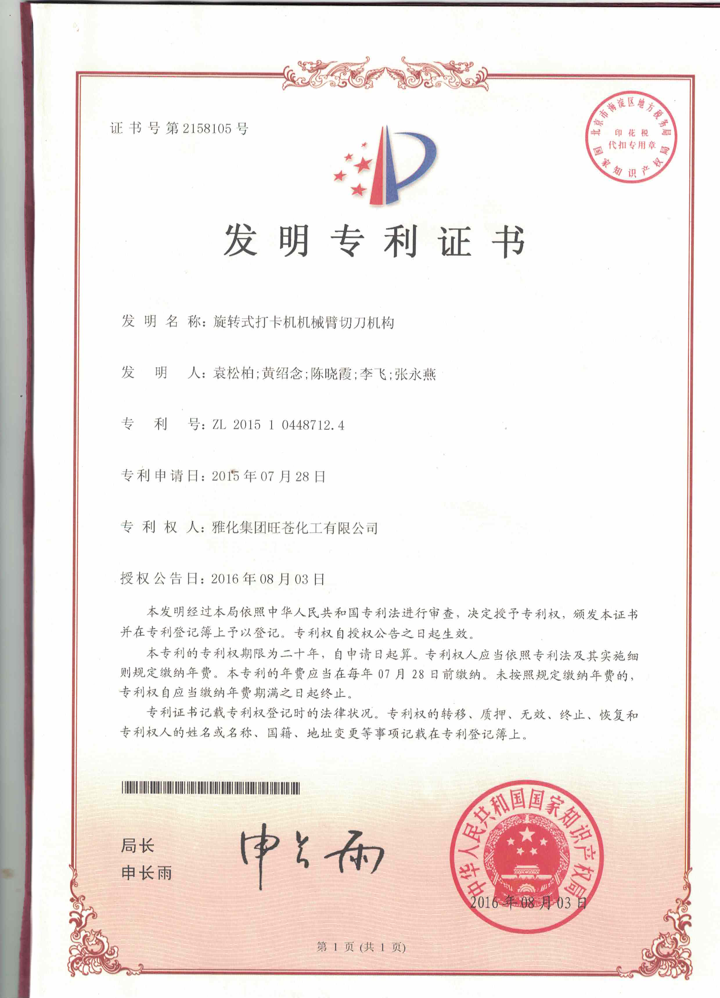 旋转式打卡机机械臂切刀机构