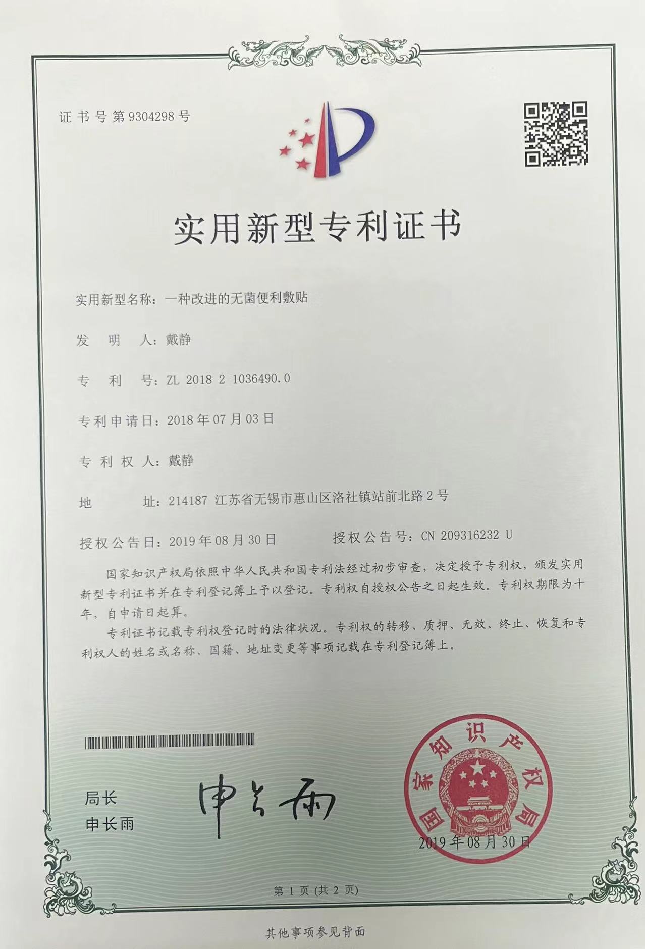一种改进的无菌便利敷贴