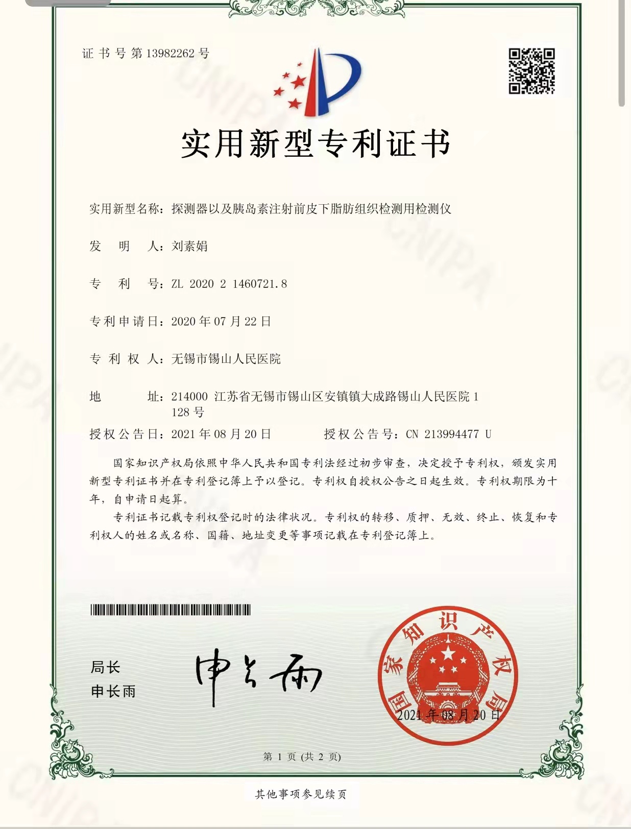 探测器以及胰岛素注射前皮下脂肪组织检测用检测仪