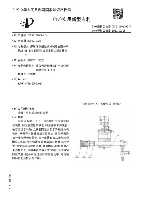 冷镦打机头转轴回位装置