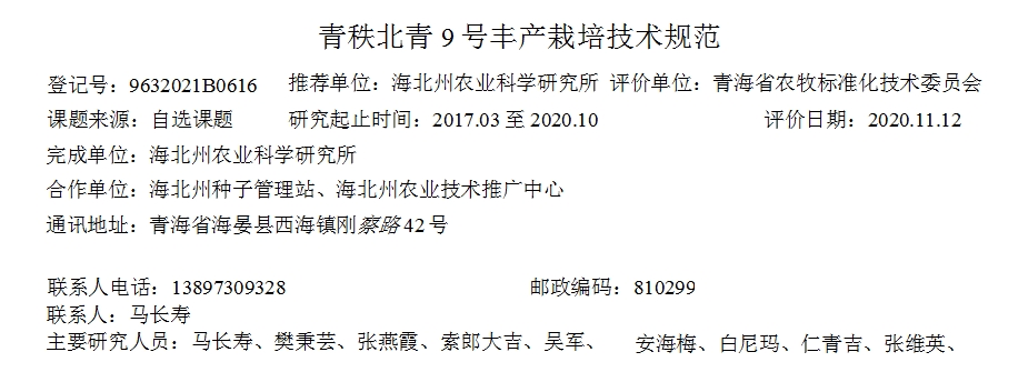 青秩北青9号丰产栽培技术规范