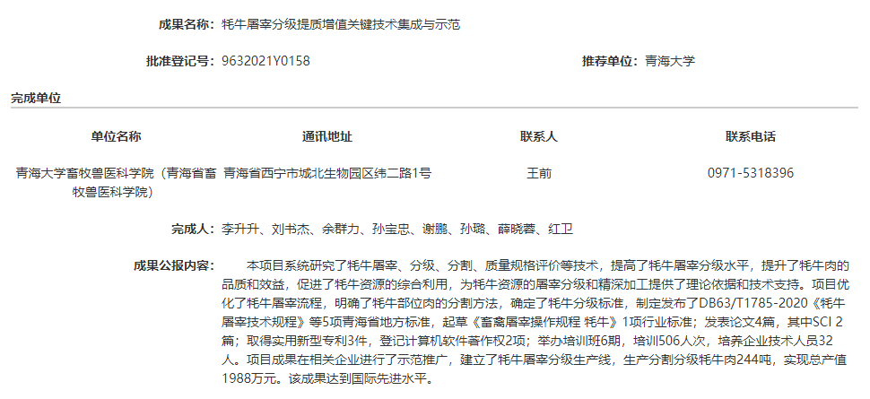 耗牛屠宰分级提质增值关键技术集成与示范