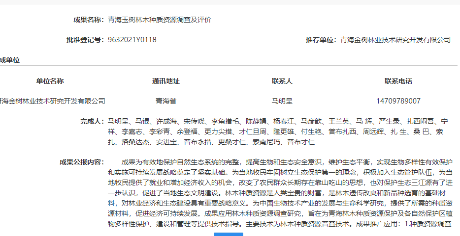 青海玉树林木种质资源调查及评价