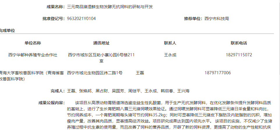 三元商品猪湿鲜生物发酵无抗饲料的研制与开发