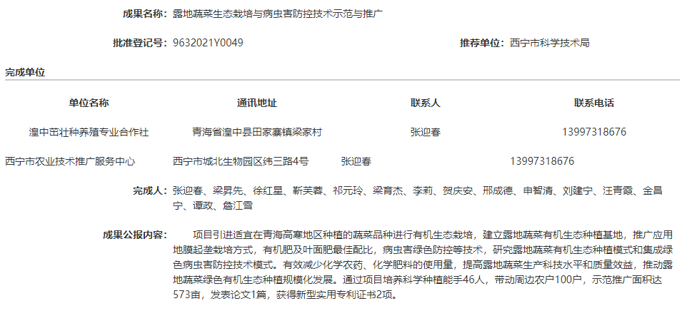 露地蔬菜生态栽培与病虫害防控技术示范与推广