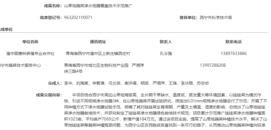 山旱地蔬菜渗水地膜覆盖技术示范推广