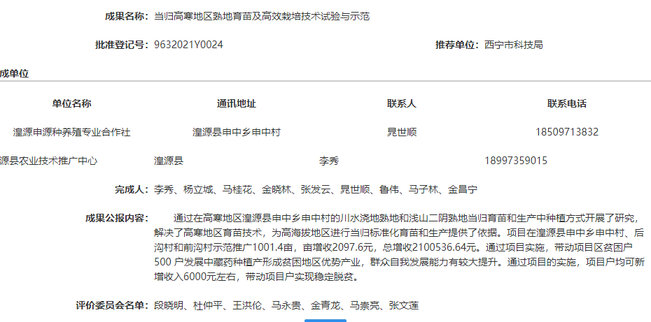 当归高寒地区熟地育苗及高效栽培技术试验与示范