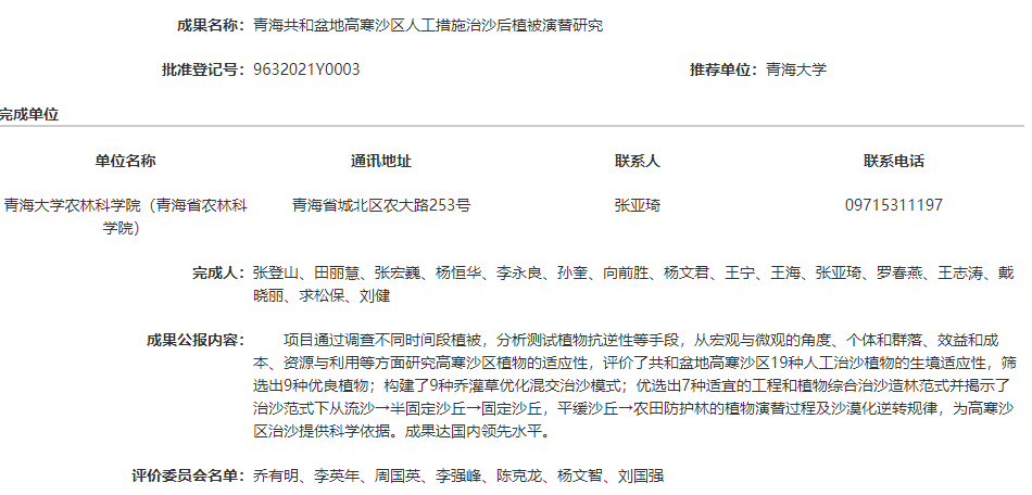 青海共和盆地高寒沙区人工措施治沙后植被演替研究
