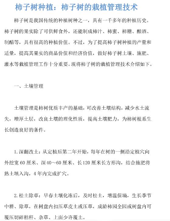柿子树的栽培管理技术