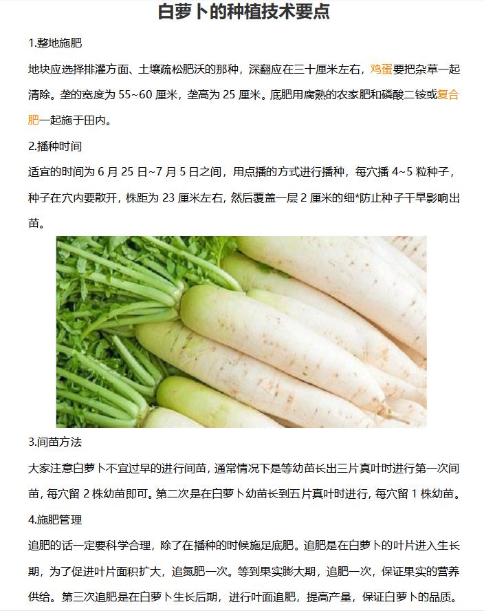 白萝卜的种植技术要点