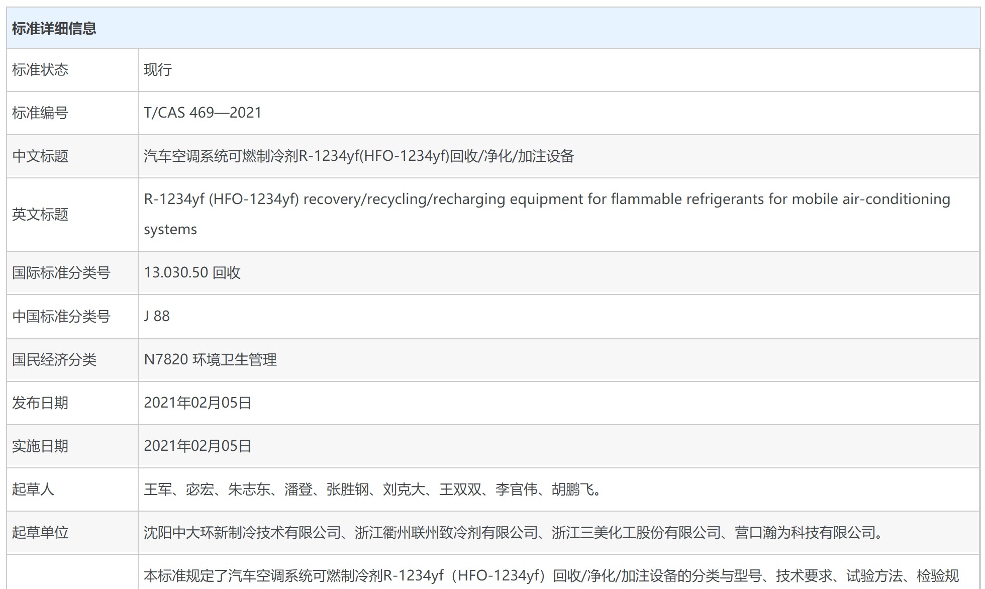 汽车空调系统可燃制冷剂R-1234yf(HFO-1234yf)回收/净化/加注设备