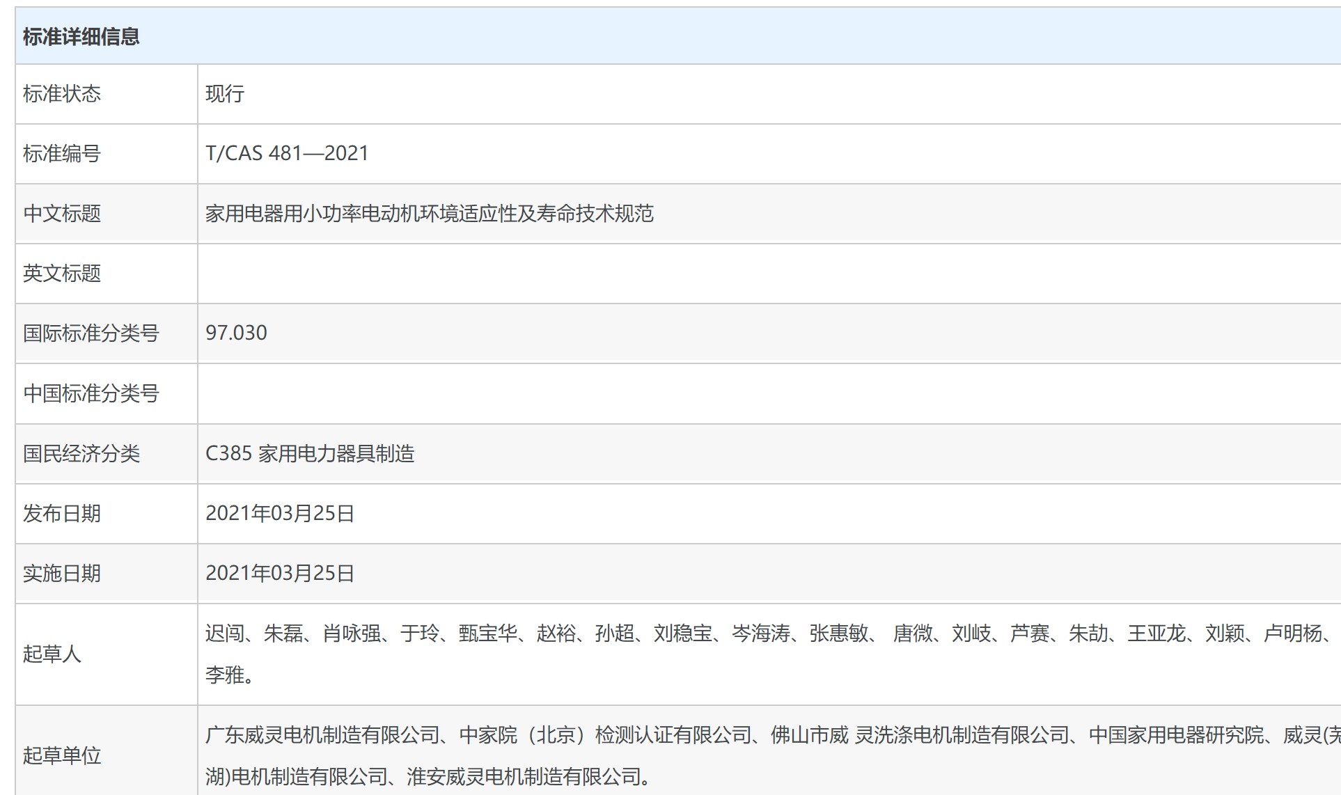 家用电器用小功率电动机环境适应性及寿命技术规范
