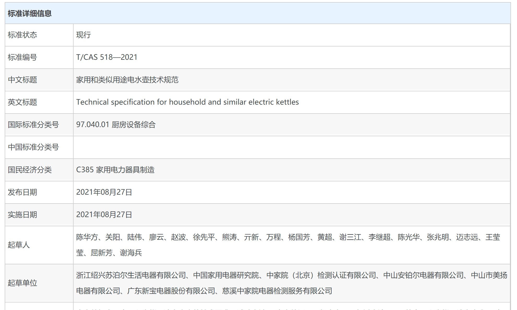 家用和类似用途电水壶技术规范