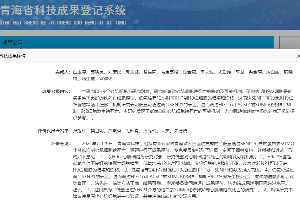 低氧通过SENP1介导的蛋白去SUMO化修饰抑制心肌细胞铁死亡的研究