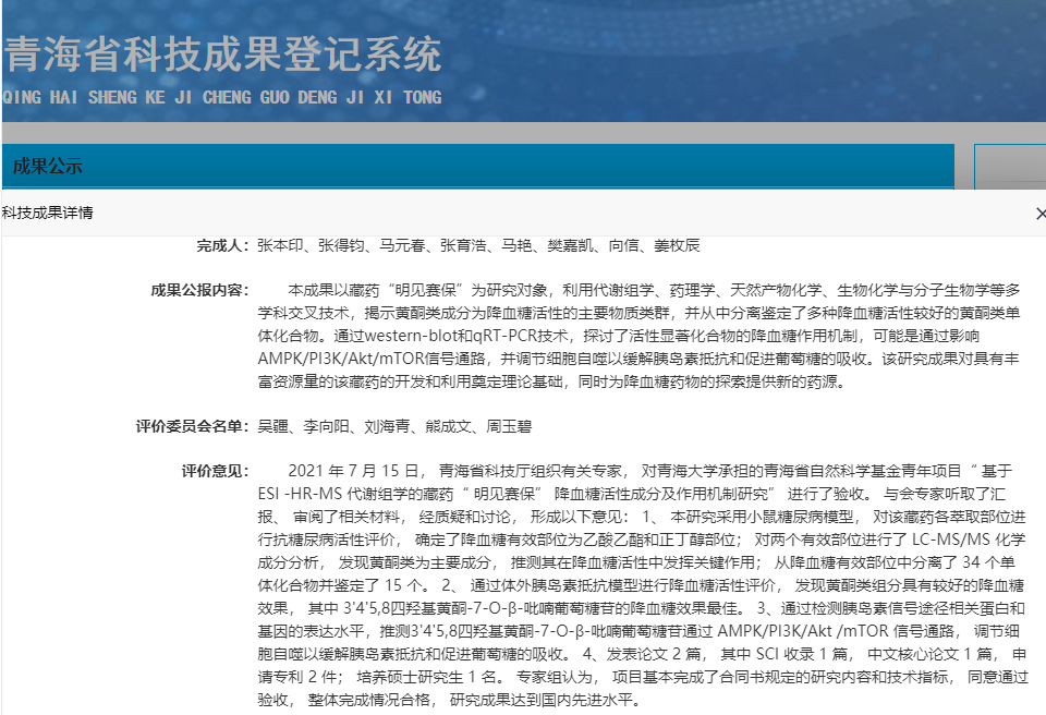 基于ESI-HR-MS代谢组学的藏药“明见赛保” 降血糖活性成分及作用机制研究