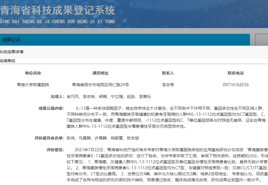 青海藏族慢性牙周病患者IL-13基因多态性的研究