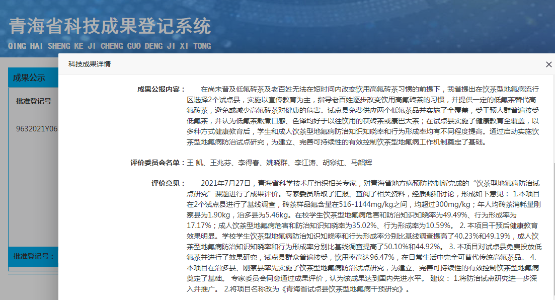 青海省试点县饮茶型地氟病干预研究