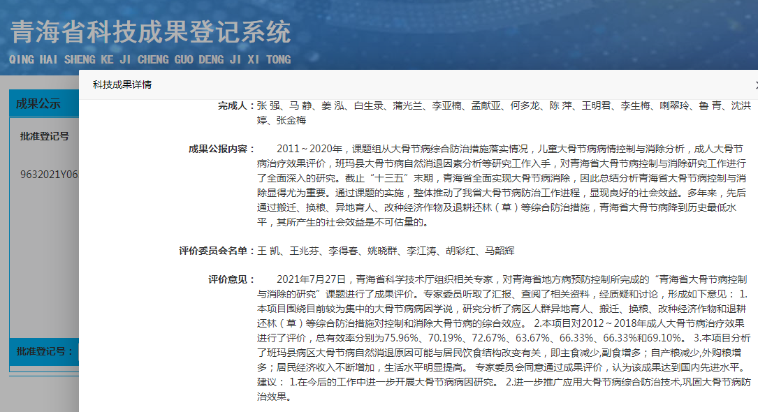 青海省大骨节病控制与消除的研究