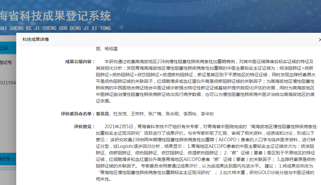 青海地区慢性阻塞性肺疾病急性加重期标实主证现况研究