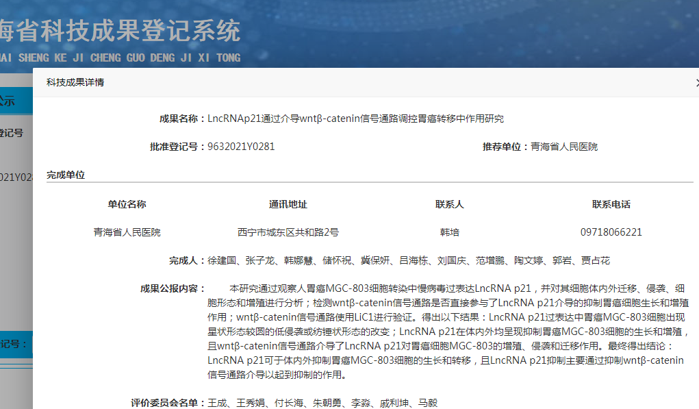LncRNAp21通过介导wntβ-catenin信号通路调控胃癌转移中作用研究