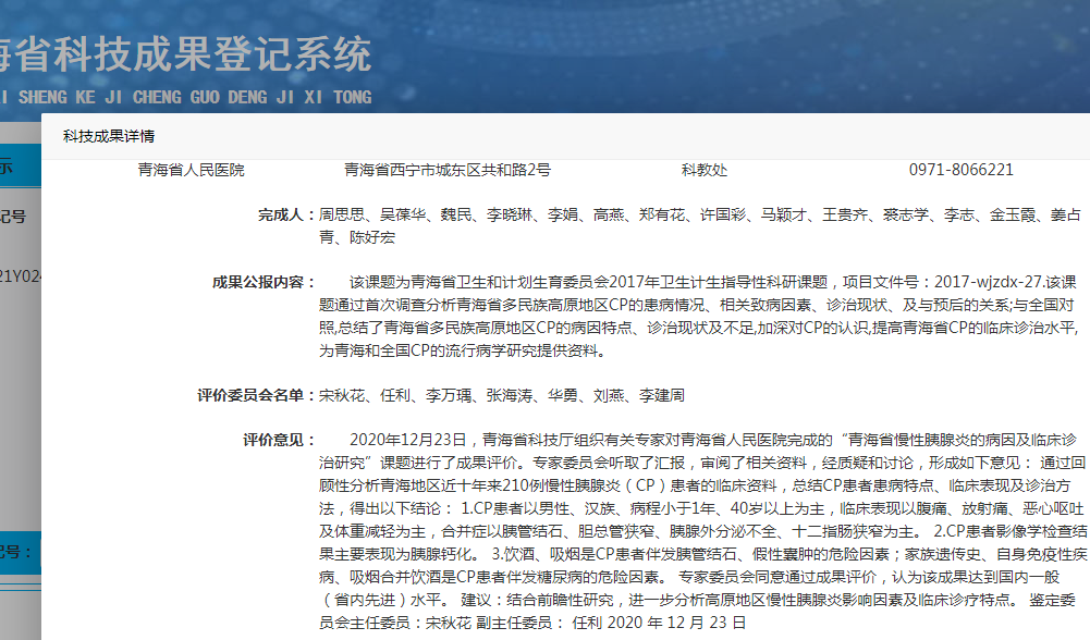 青海省慢性胰腺炎的病因及临床诊治研究