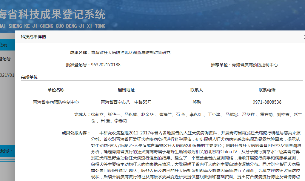 青海省狂犬病防控现状调查与防制对策研究