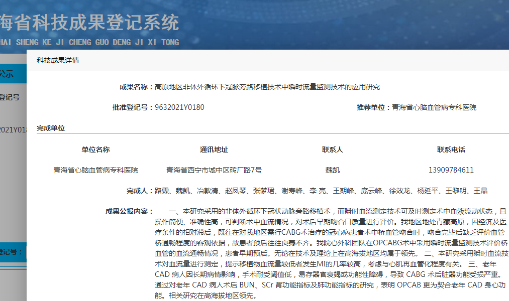 高原地区非体外循环下冠脉旁路移植技术中瞬时流量监测技术的应用研究