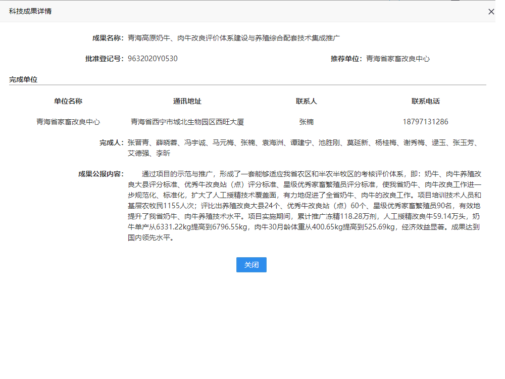 青海高原奶牛、肉牛改良评价体系建设与养殖综合配套技术集成推广