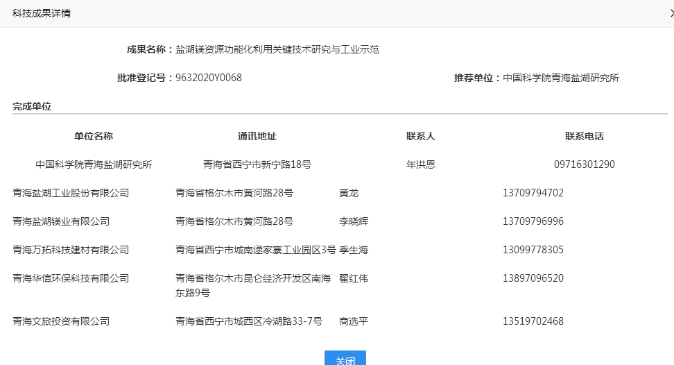 盐湖镁资源功能化利用关键技术研究与工业示范