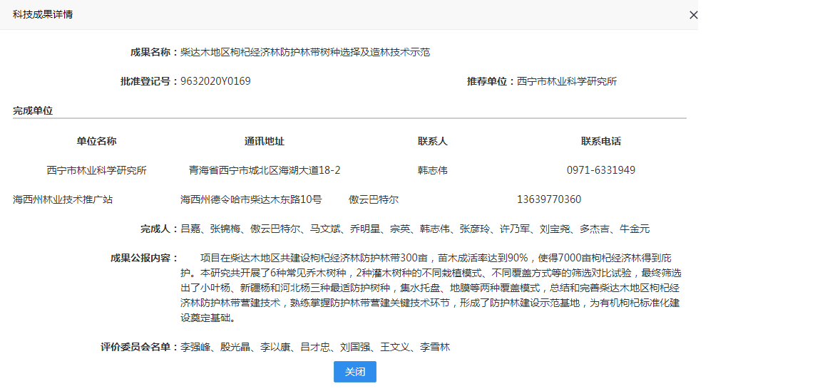 柴达木地区枸杞经济林防护林带树种选择及造林技术示范