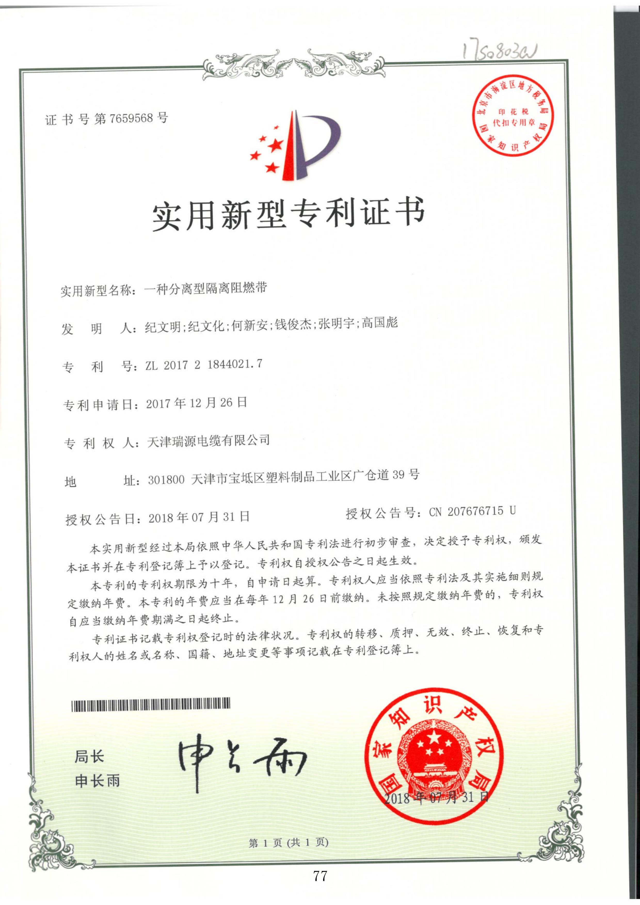 一种分离型隔离阻燃带