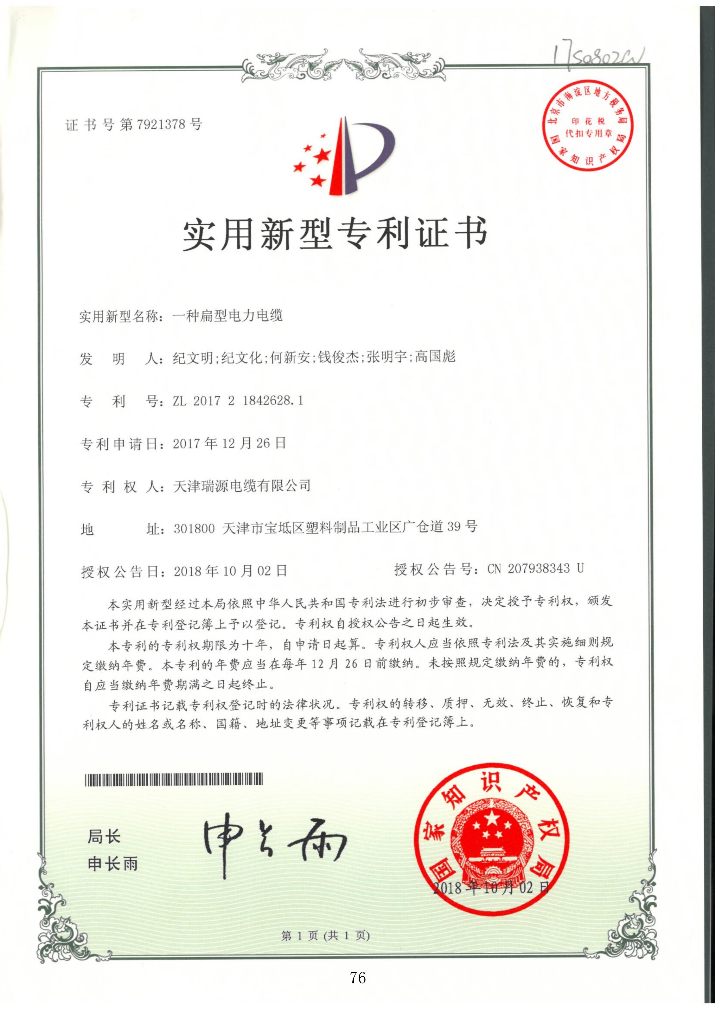 一种扁型电力电缆
