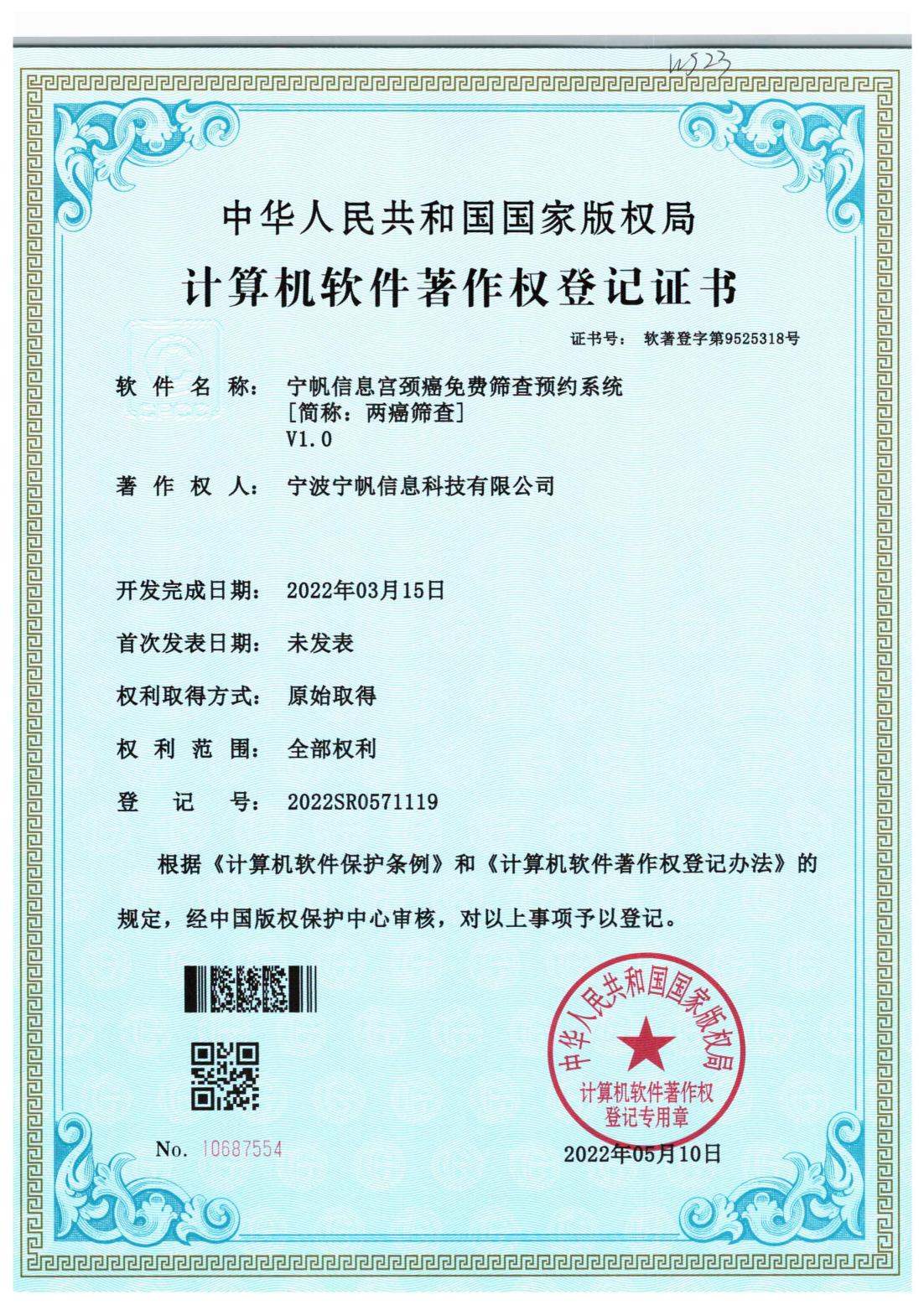 宁帆信息宫颈癌免费筛查预约系统V1.0