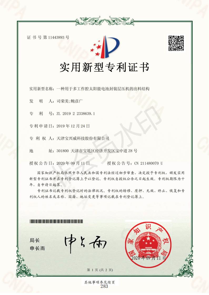 一种用于多工作腔太阳能电池封装层压机的出料结构