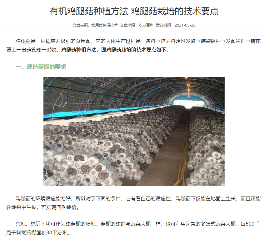 有机鸡腿菇种植方法 鸡腿菇栽培的技术要点